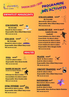 Pour des raisons de disponibilité de la salle de sports, nous avons modifié les horaires des activités ci-dessous :
