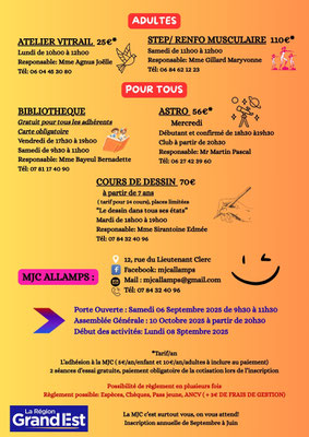 Toute l’équipe de la MJC Allamps est heureuse de vous retrouver pour une nouvelle saison riche en activités et en bonne humeur !